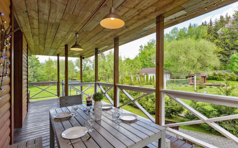 В усадьбе недалеко от Минска «Домик у пруда» есть уютная деревянная терраса, если Ваше мероприятие запланировано на лето, то терраса станет прекрасным местом для празднования. Сочный шашлык, плов, мясо на углях, запеченая картошка — все это можно приготовить в усадьбе и организовать потрясающе наполненный не только вкусными блюдами, но и позитивными эмоциями праздник!
