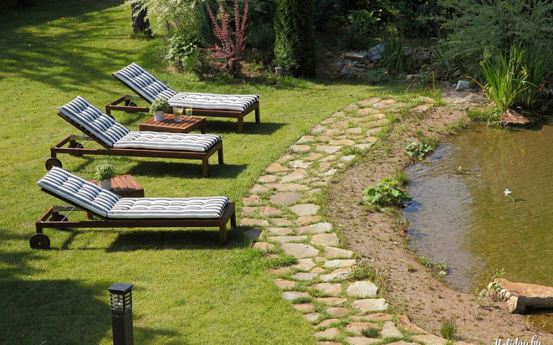 Элегантность дома дополняет уютная территория, где можно весь день отлично проводить время. Только попробуйте на минуту перенестись в Mon Chalet: Вы сидите в просторной беседке, наслаждаетесь свежеприготовленным барбекю, потом ловите лучи солнца лежа на шезлонге, а решая освежиться, плаваете в чистом пруду с золотыми карпами...