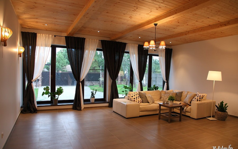 Вы заходите в дом, выполненный в лучших традициях курортных шале во Франции. Сразу попадаете в просторный светлый холл. Здесь же на первом этаже Вы с удовольствием сыграете в русский бильярд, от души попаритесь в сауне с купелью и приготовите свои вкуснейшие блюда в современной кухне, оснащенной всей необходимой для этого техникой и приборами. Если же Вы ценитель вина – Вы, конечно, не откажете себе в посещении винного погреба.