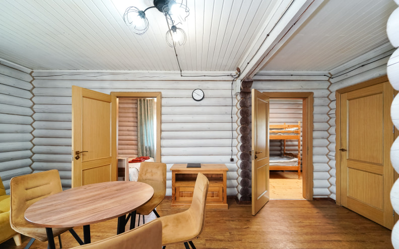 Гостевой дом в аренду в комплексе «Дукорский маёнтак» недалеко от Минска построен из натурального дерева, вмещает компанию до 6 человек и имеет все современные удобства, к которым привык городской житель