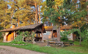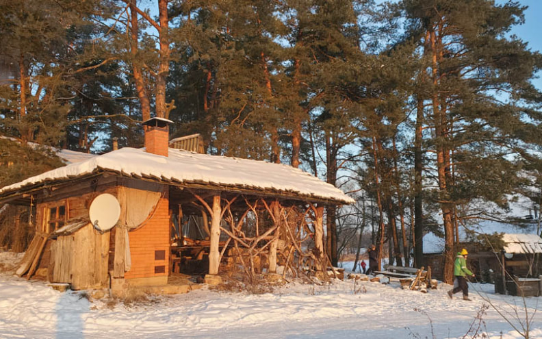 Деревянный дом в аренду №1 (Харомы Яромы) рассчитан на размещение до 10 человек. Мебель – ручной работы. В этом доме две спальни, гостиная, кухня и туалет. Имеется интернет, телевидение