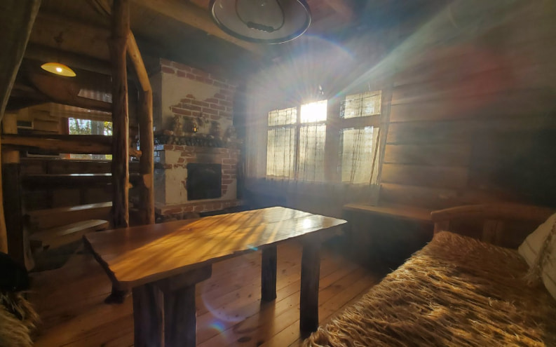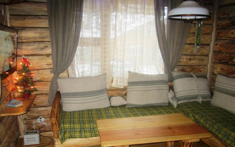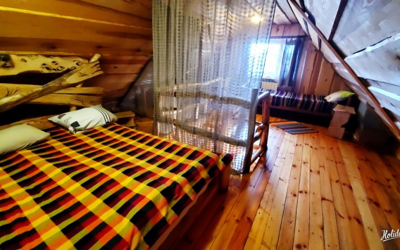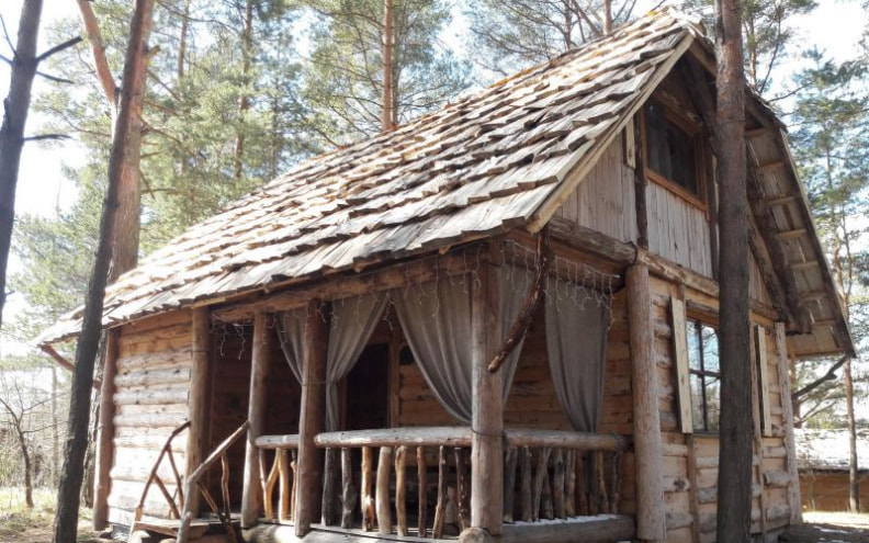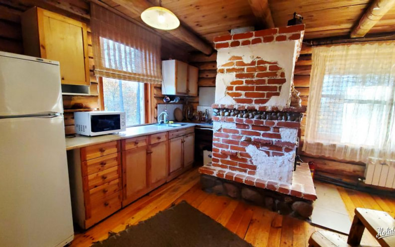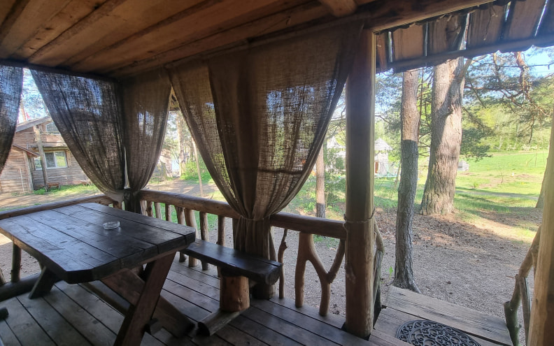 К услугам гостей один из пяти гостевых домиков - дом №2 вместимостью на 5-6 человек. В деревянном домике мебель выполнена вручную, здесь есть оборудованная кухня, печь, терраса возле дома.
